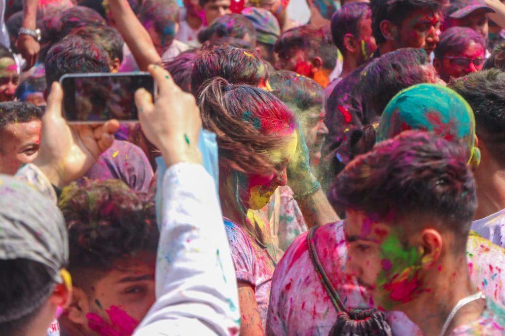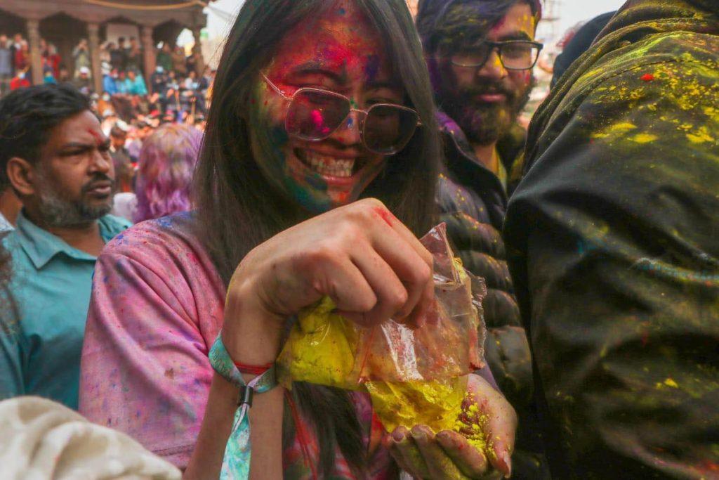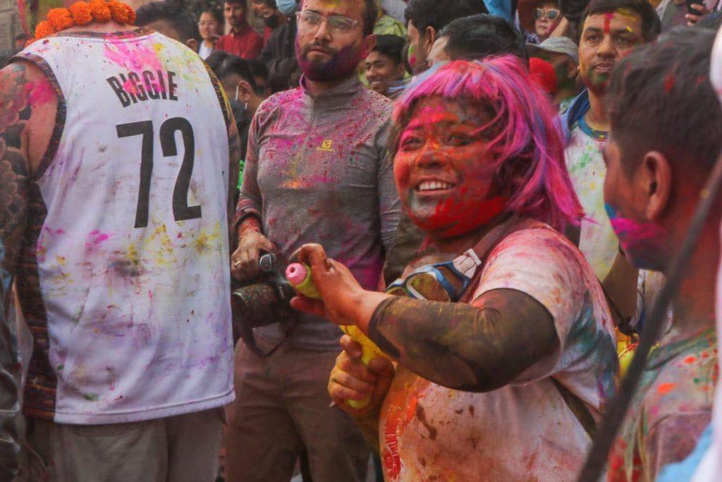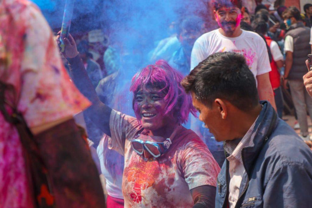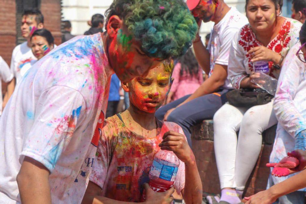 काठमाडौं । देशभर सोमबार फागुपूर्णिमा हर्षाेल्लासका साथ मनाइँदै छ । तराईमा औपचारिक रुपमा मंगलबार मनाइने भए पनि आइतबार पनि फागुपूर्णिमा मनाइरहेका छन् । फागु पूर्णिमा अवसरमा काठमाडौंको वसन्तपुरमा भेला भएका बालबालिकादेखि युवाहरुले हर्षाेल्लासका साथ मनाइरहेका छन् । एक अर्कालाई रङ लगाएर शुभकामना साटासाट गर्दै नाचगान गरेर फागुपूर्णिमा मनाइरहेका छन् ।